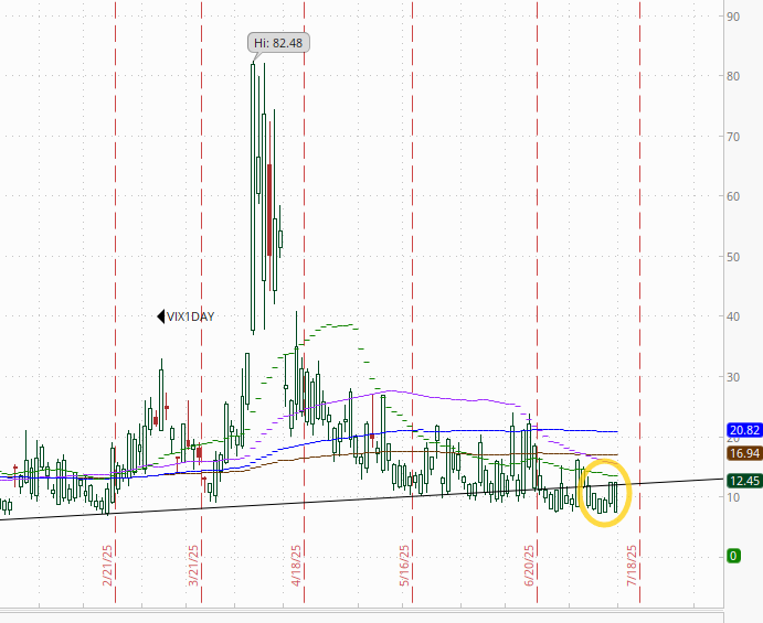 While the weekend is behind us, the 1-Day VIX remained at the highest in a week at 12.5, consistent with traders implying a ~0.78% move in the SPX next session.