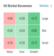 Morningstar style box showed the stronger relative performance in growth today.