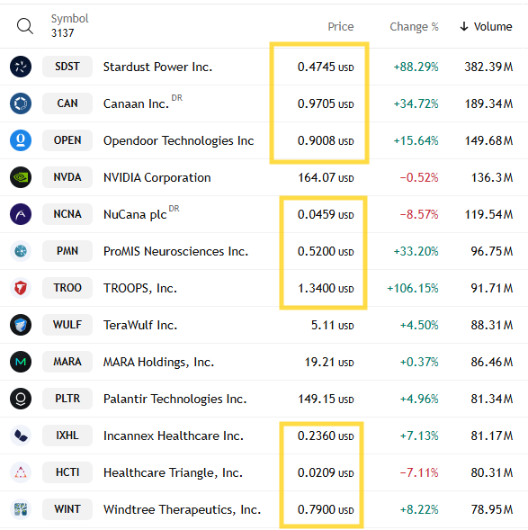 Nasdaq positive volume also improved and remained more elevated than the NYSE in part due to elevated penny stock volume at 61.7% in line with the +0.27% gain in the index. That said, the penny stock volumes were a little less extreme than last week. For example, Friday of the top 13 stocks by volume on the Nasdaq only NVDA had a share price higher than $4. While that was true of 9 of the top 13 today, their total volume was less than 1bn shares well under what we’ve seen on other days (they represented around 16% of total volume Monday).
