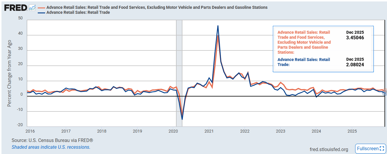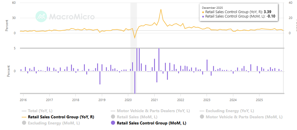 Headline, core, and control group retail sales all come in much weaker than expected with y/y the least since 2024.