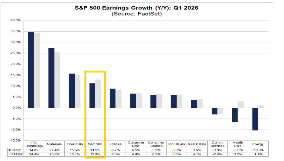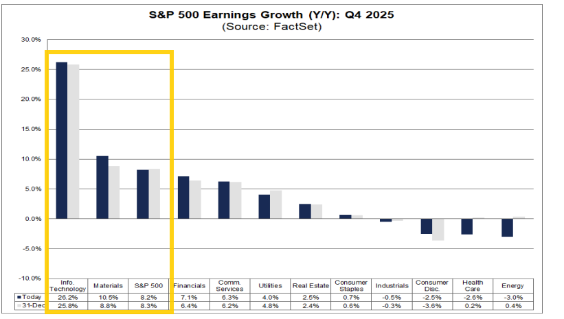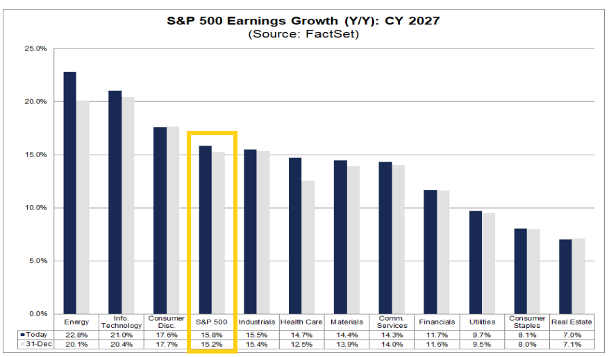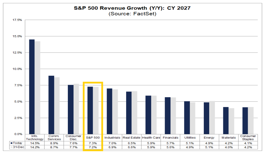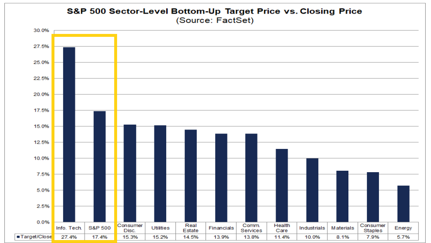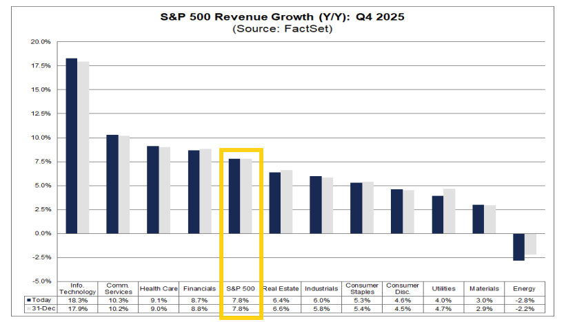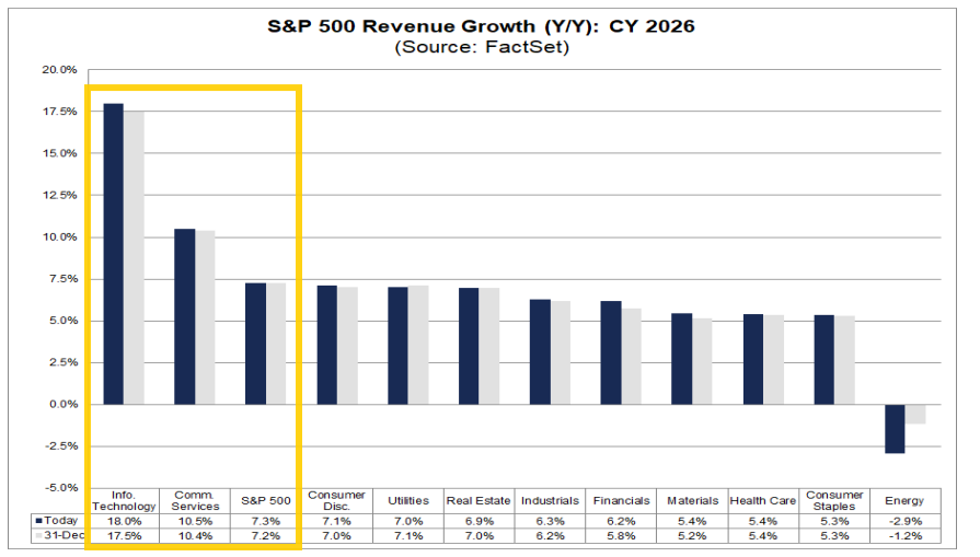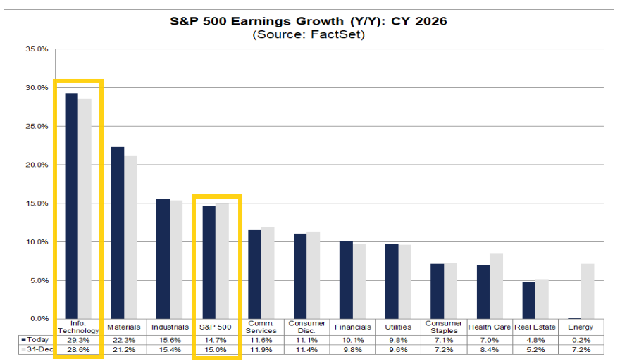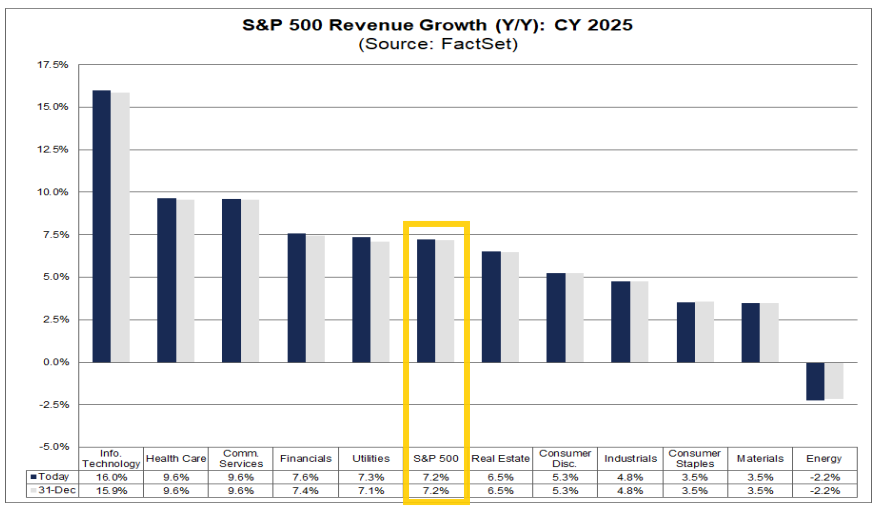 The 8.2% in expected earnings growth continues to be largely driven by Tech which is expected to see a huge +26.2% y/y increase (+0.3% w/w).
