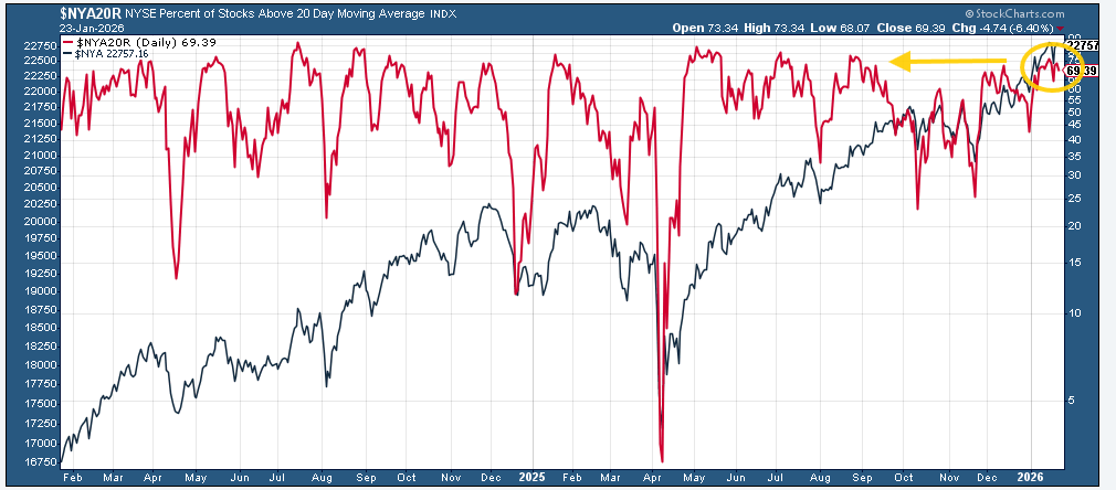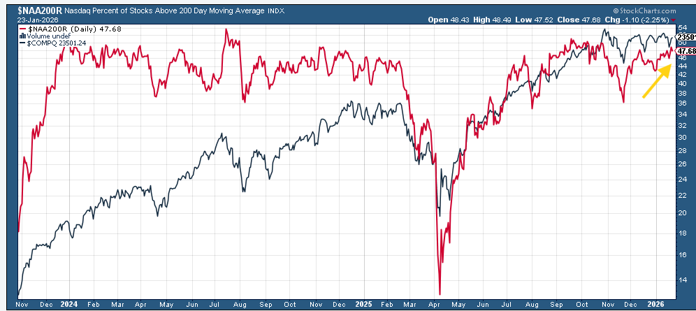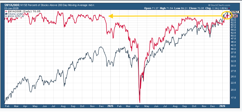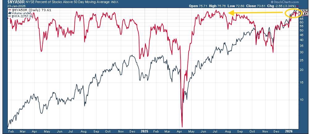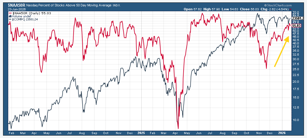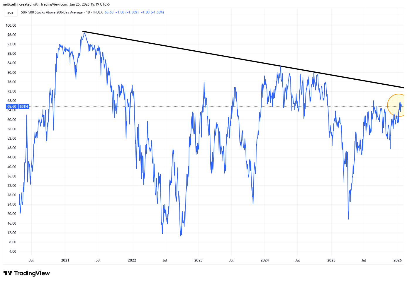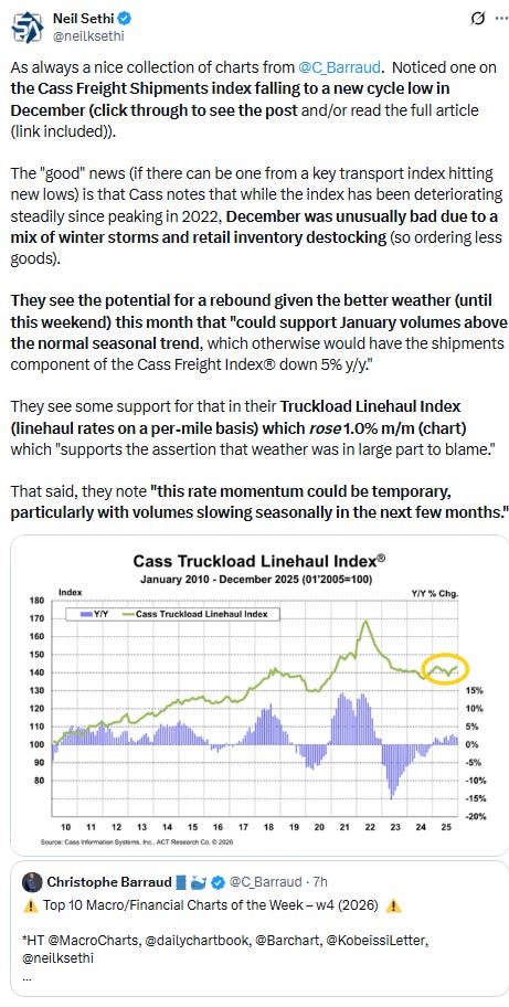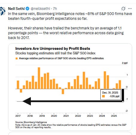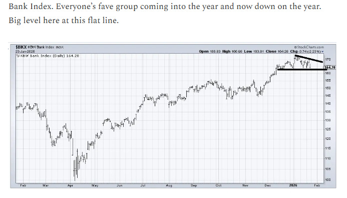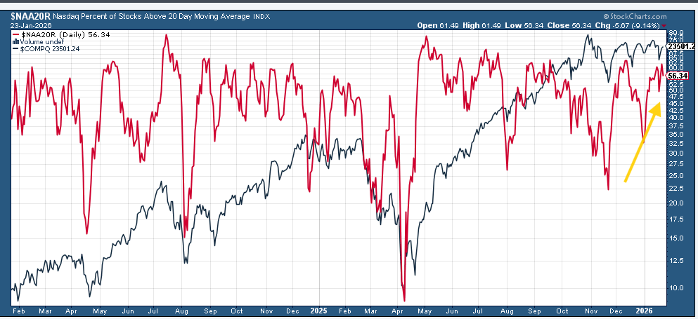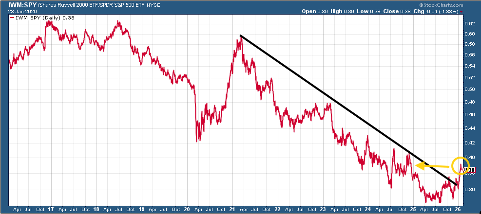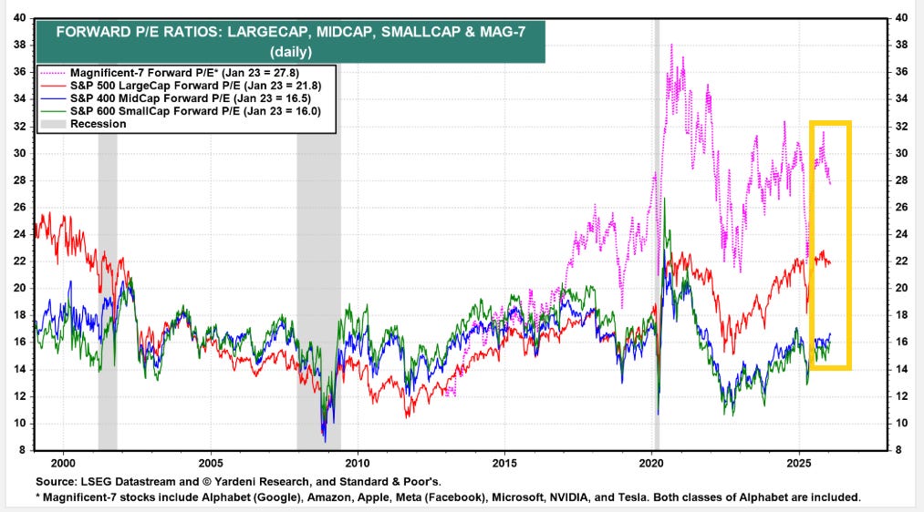 As I have said the past few weeks, despite a start to the year that I think few envisioned (outside of the President’s inner circle perhaps) from the geopolitical (Maduro removal, potential Iran strikes, potential NATO tariffs, etc.) to the domestic (Fed rate cut bets slashed, a flurry of executive proposals from capping credit card rates to homebuyer assistance to attempts to limit certain buybacks and executive compensation, renewed government shutdown threats, etc.) markets have not only hung in remarkably well but have seen a dramatic broadening to the more sensitive areas of the market (cyclicals, small caps, etc.).