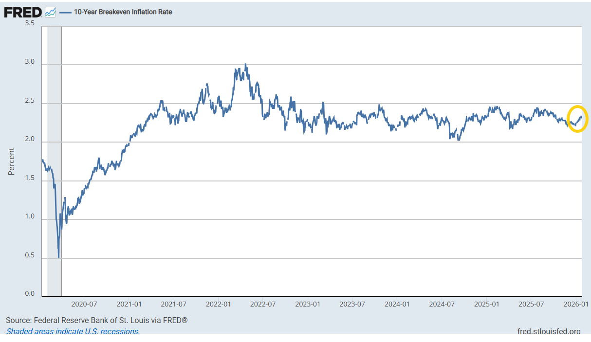And the 10-yr breakeven inflation rate edged back -1bps to 2.32% as of Friday off the highest since Oct, but remaining in its post-2022 range.