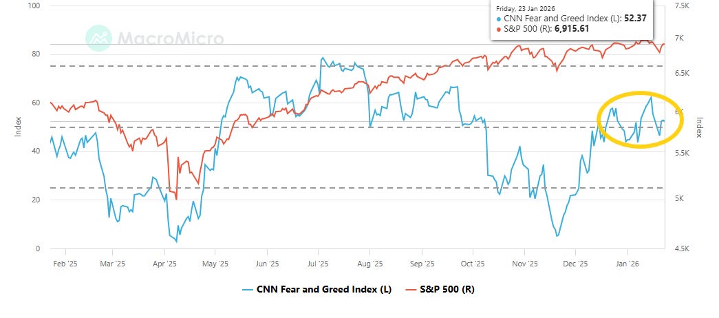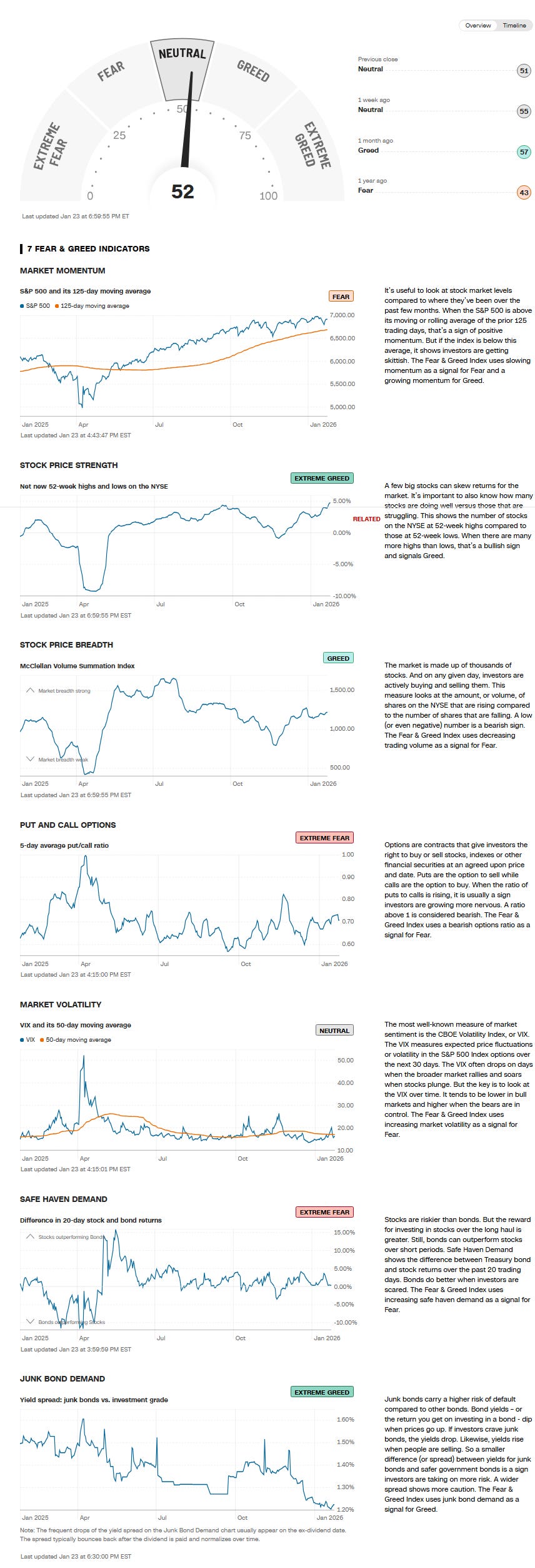 Extreme Greed = junk bond demand (vs investment grade); stock price strength (net new 52-week highs) (From Neutral);