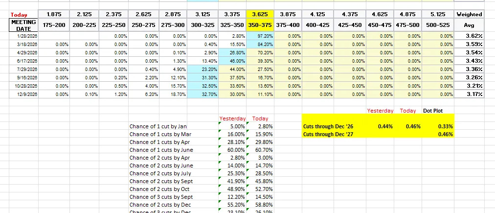 I think that we have perhaps travelled a bit too far in the hawkish direction, but one thing we can say definitively is there will be no Jan rate cut. That was confirmed by even one of the doves, Philadelphia Fed Pres Paulson as covered during the week. More importantly the “core” of the Fed (also discussed this week (Powell, Jefferson, Williams)) who are the swing voters between the doves (Miran, Bowman, Waller (although Waller hasn’t spoken since the Dec FOMC so not quite sure on him)) and the hawks (in terms of voters, basically at this point all of the regional Fed Presidents (given Paulson is the most dovish)). With Williams and Jefferson both indicated that rates “are in a good place” it was a clear signal on their intentions.