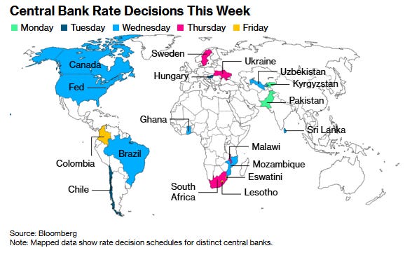 Africa will also see several decisions on borrowing costs: Ghana is poised to extend its easing cycle on Wednesday, with policymakers expected to cut their rate by 300 basis points to 15% as inflation continues to ease. Mozambique is anticipated to lower borrowing costs to support the economy amid subdued price pressures. South Africa may follow a day later with a 25-basis-point cut, to 6.5%, as the inflation outlook remains benign. Malawi is likely to retain its key rate at 26% as inflation stays elevated. On Friday, Eswatini and Lesotho — whose currencies are pegged to the rand — will possibly diverge. Eswatini is expected to trim borrowing costs by a quarter point, while Lesotho may stay on hold.