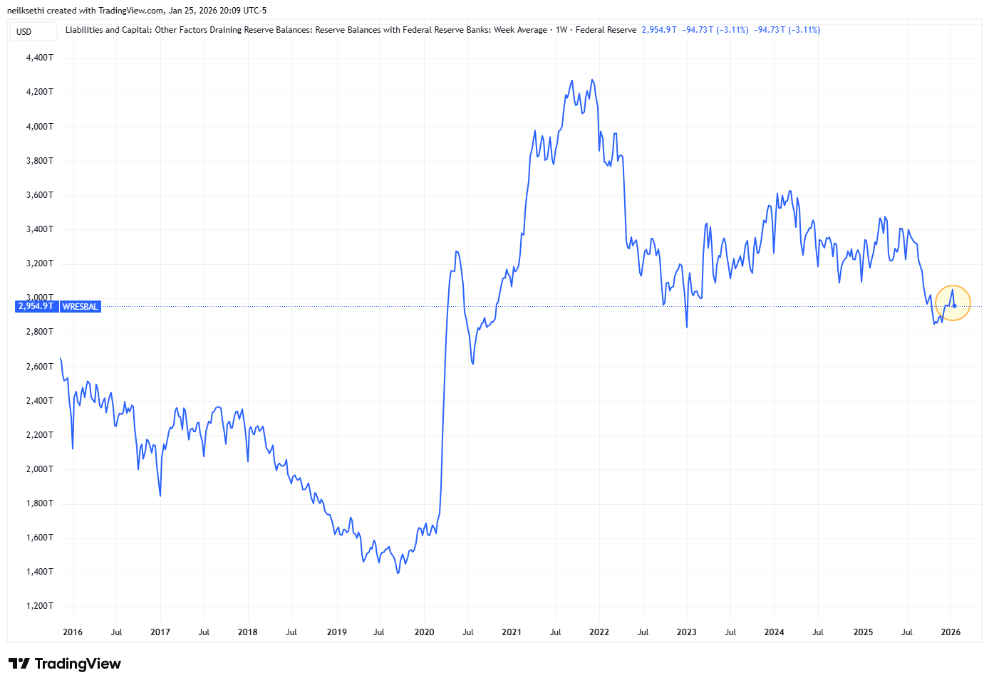 As a reminder, now that RRP levels have drained to minimum levels, attention has turned to bank reserves as discussed below.