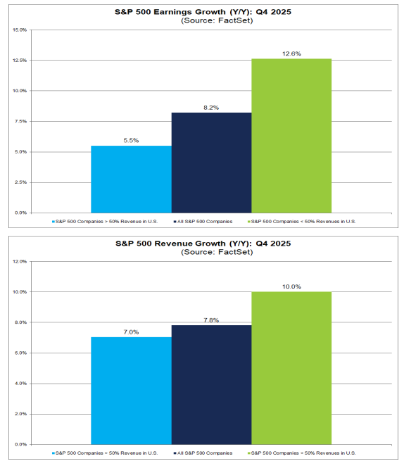 Despite all the consternation about the breakdown of US relationships abroad, companies that more than 50% of their earnings and revenues ex-US are expected to significantly outperform those that are more domestically focused with the former group expected to see +12.6% earnings growth and +10.0% revenue growth in Q4 vs 5.5% and 7.0% for those with less than 50% sourced outside the US.