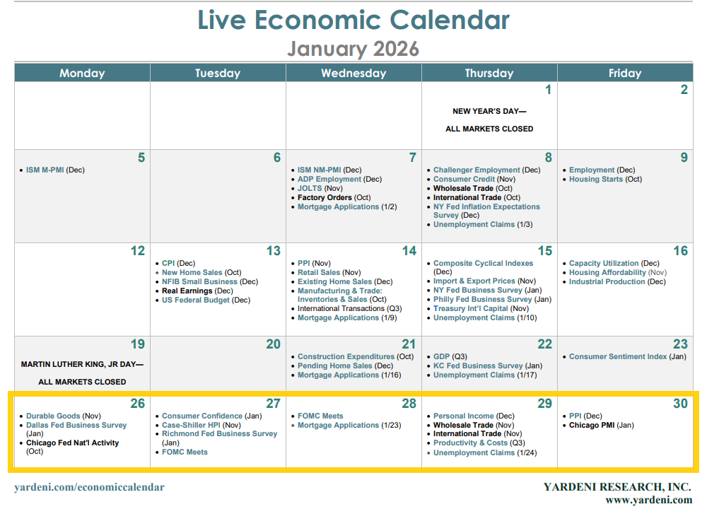 A comprehensive look at the upcoming week for US economics, equities and fixed income