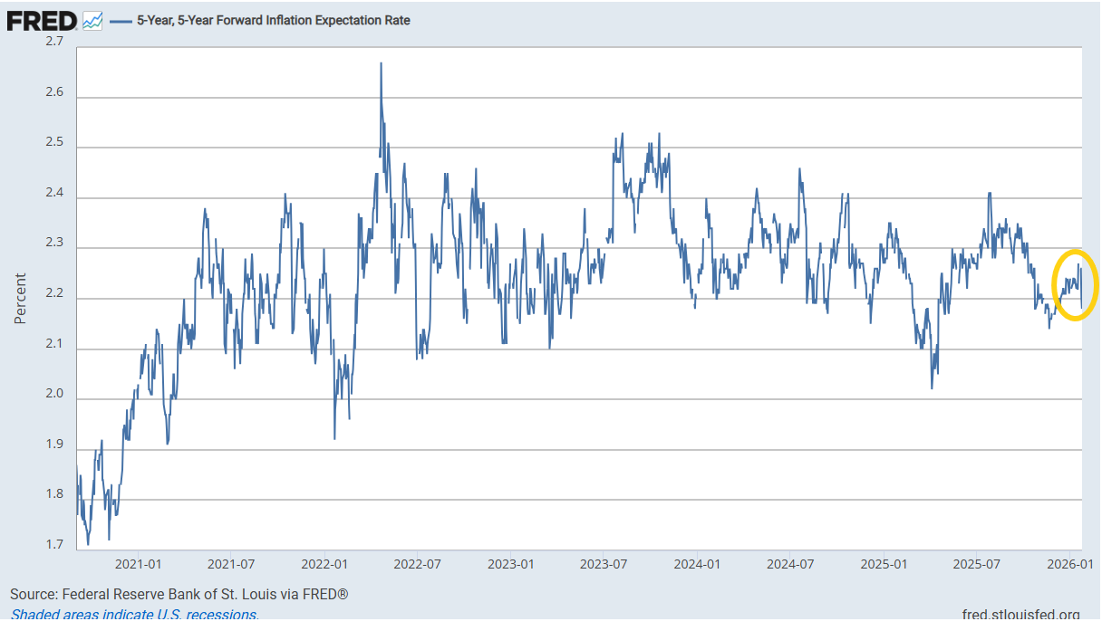 Interestingly, long term inflation expectations as measured by the 5-yr, 5-yr forward rate (expected inflation starting in 5 yrs over the following 5 yrs) which had pushed up to 3-month highs at 2.27% last week dropped -9bps w/w to 2.18%, the least in 6 weeks. Still though just in the middle of the range since 2022. They’re a touch below their 20-yr average (2.25%).