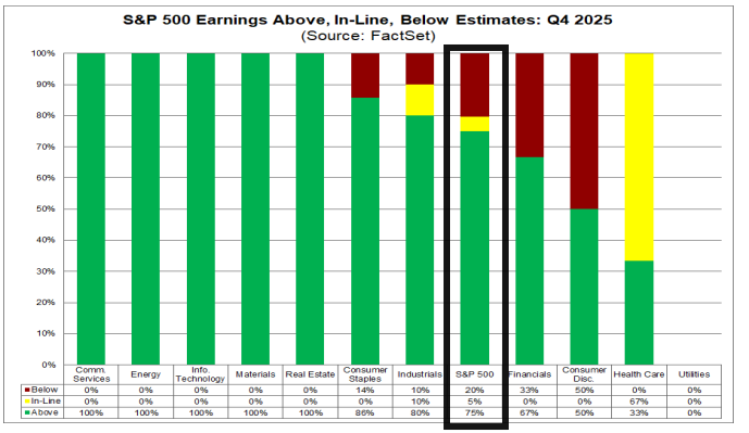 Last week we moved a little deeper into Q4 results season with now 13% of the SPX by earnings weight having reported (so still very early) through Thursday. At this point, 75% have beaten (down from 79% the prior week and 83% in Q3, which though was the best since Q2 ‘21), also below the 5yr average of 78% and the 10yr average of 76%.