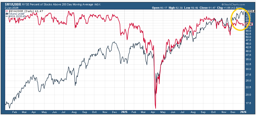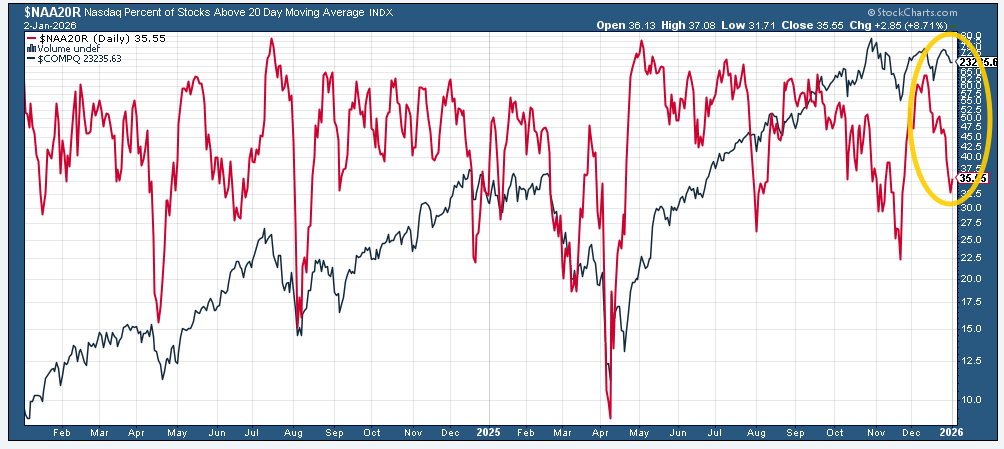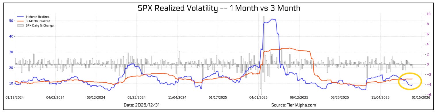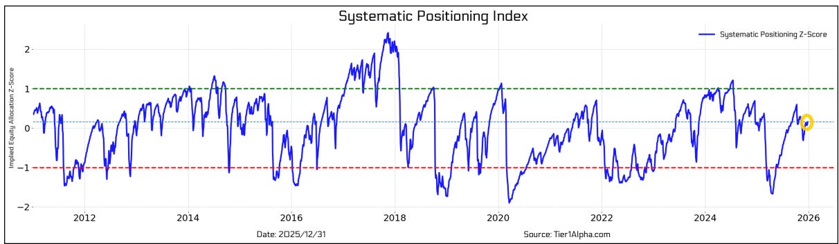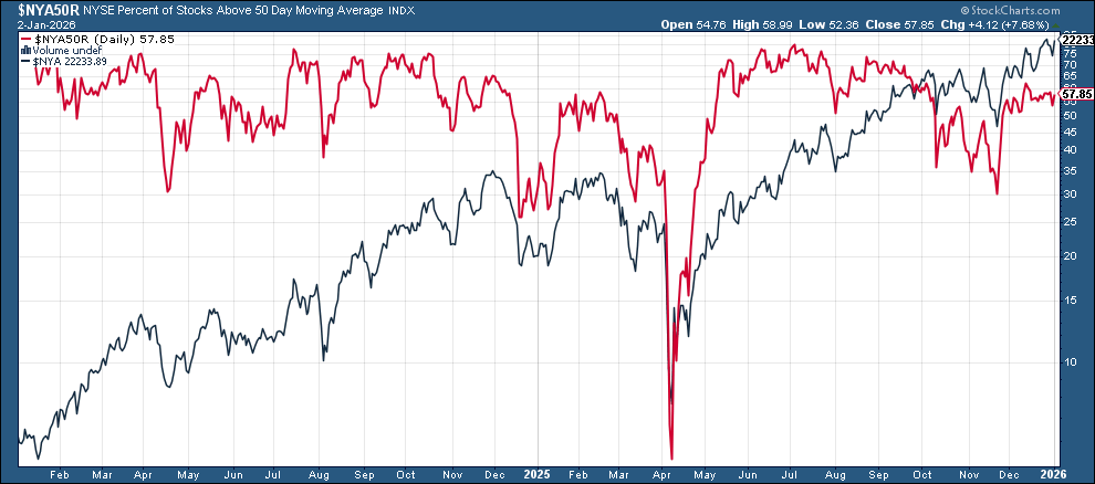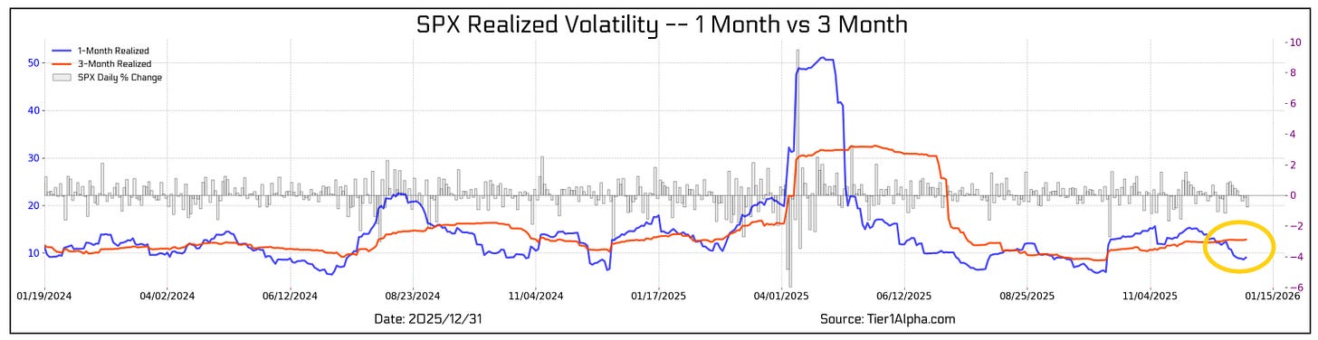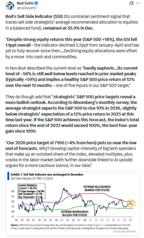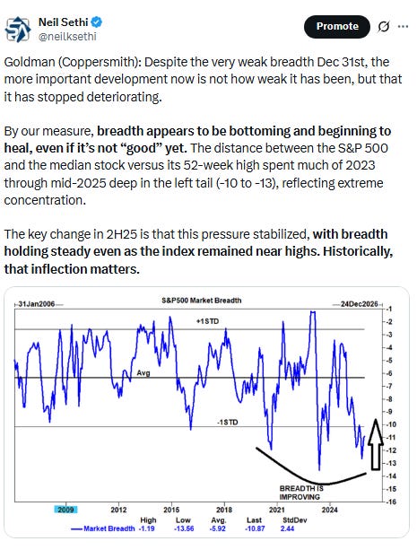 And we certainly did get something out of Washington last week with the forced extradition of Maduro, but as I write this Sunday night, markets seem unphased with the SPX +0.1%. So there’s not much from the above that has changed other than the fact that the underlying breath took a step in the wrong direction last week. But after a nearly 20% return, I am not reading much into the action to end the year, and I think this week will give us a better feel for how investors are approaching things at least as we move through January. This week will also give us some important economic data that will help us in that respect as well.