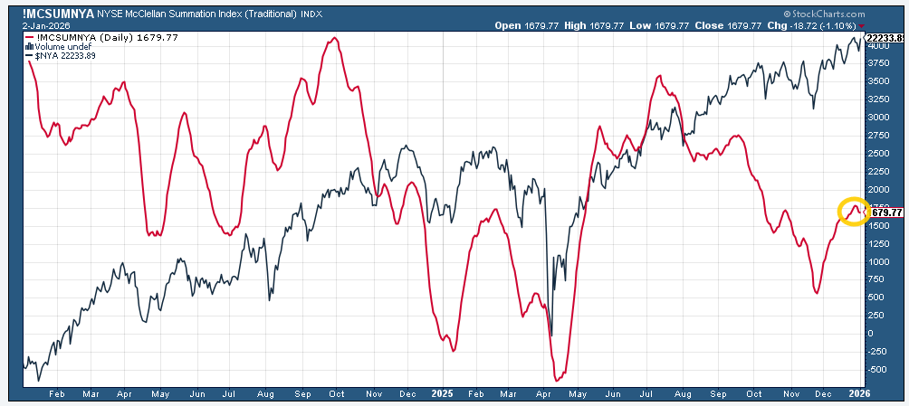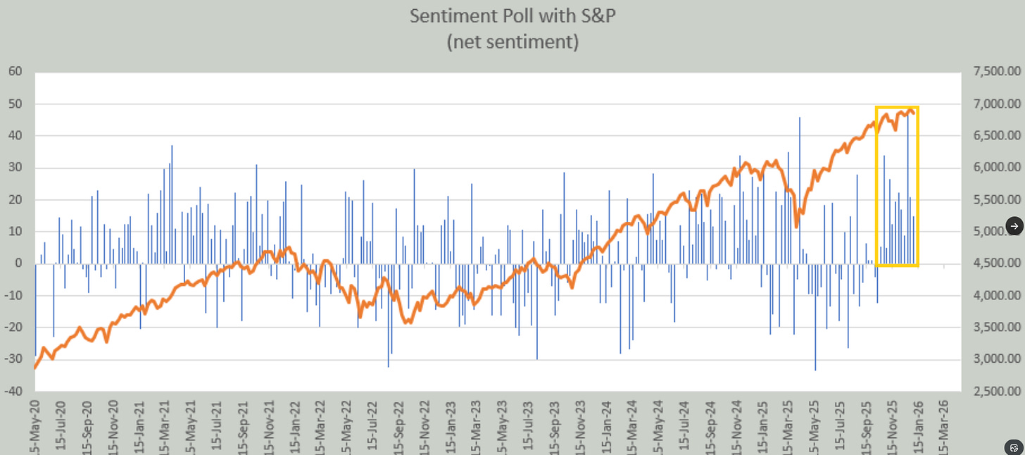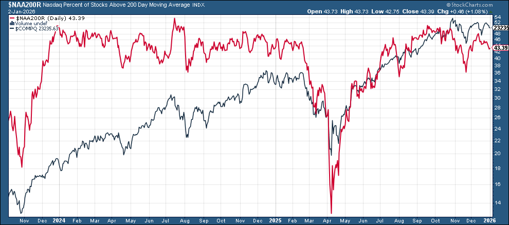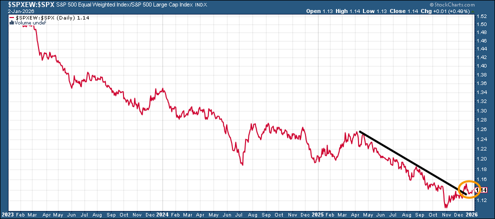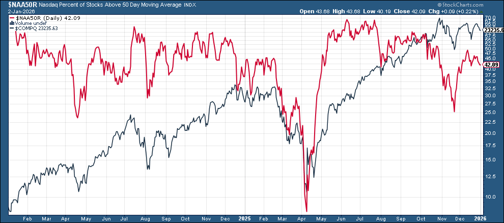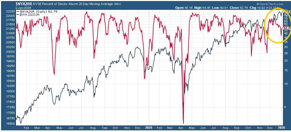 And we certainly did get something out of Washington last week with the forced extradition of Maduro, but as I write this Sunday night, markets seem unphased with the SPX +0.1%. So there’s not much from the above that has changed other than the fact that the underlying breath took a step in the wrong direction last week. But after a nearly 20% return, I am not reading much into the action to end the year, and I think this week will give us a better feel for how investors are approaching things at least as we move through January. This week will also give us some important economic data that will help us in that respect as well.