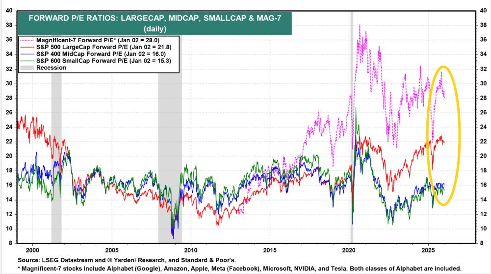 Finally, as a reminder, as we turn the page into 2026 we’ll be getting more economic boost from deregulation and the OBBB which should at the very least offset the drag we’re getting from the tariffs, restart of student loan payments, and in the short-term loss of the health insurance subsidies (although I expect those to be replaced at some point) and perhaps provide a bigger tailwind than many are expecting.