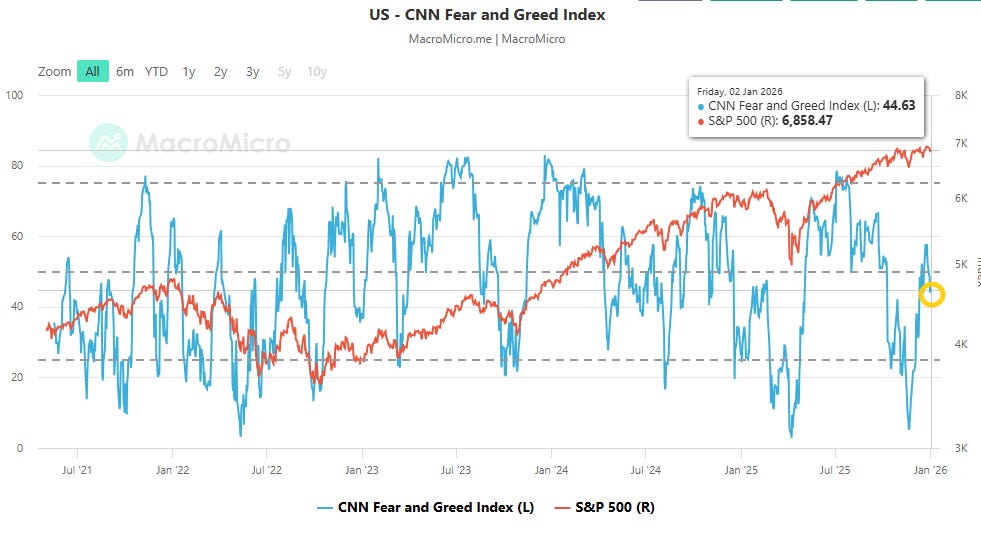 After having four of the seven indicators in Greed/Extreme Greed a week ago, now there’s just one and five in Fear/Extreme Fear (vs six in Nov):