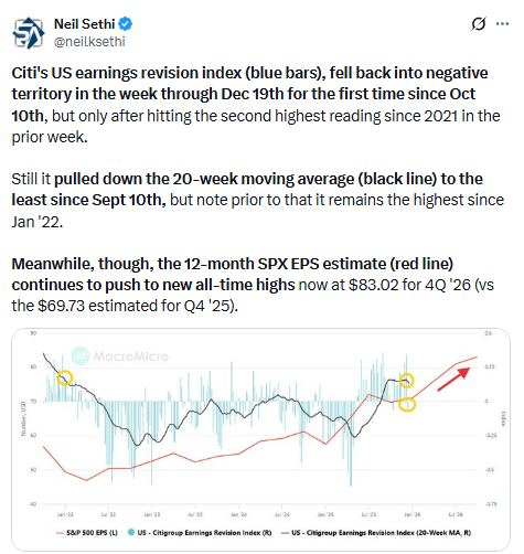 The one fly in the ointment is always something out of Washington (particularly if we get that Supreme Court ruling on the IEEPA tariffs which will definitely be market moving, although I’m thinking a negative ruling has been increasingly socialized so might not be as big of an event as I had thought earlier in the year).