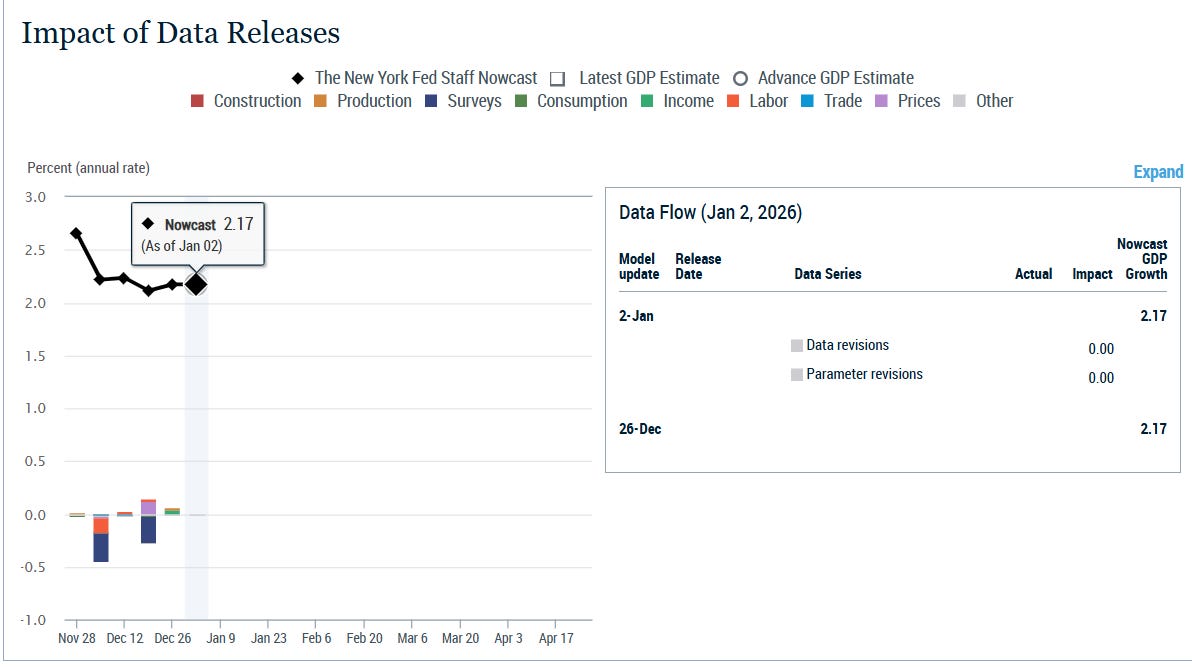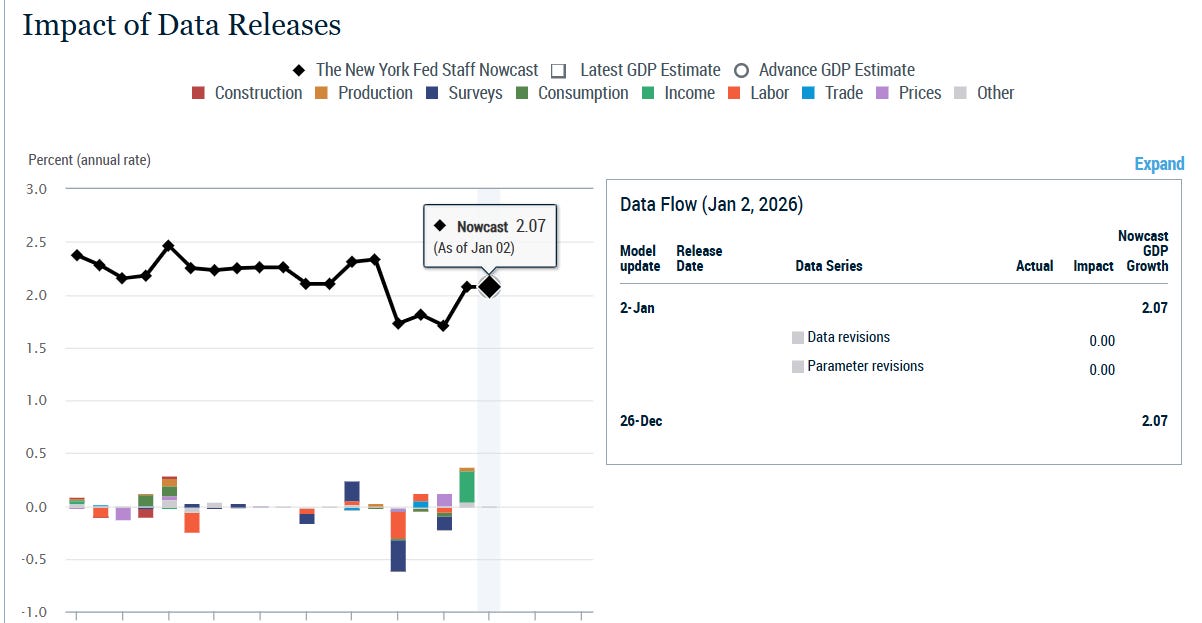 NY Fed’s 4Q GDP tracker remained at +2.07% with no data inputs this week.