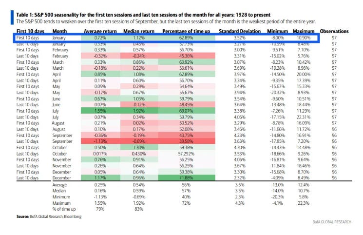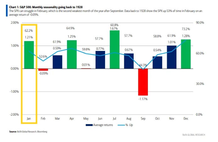 For the month as a whole, since 1928 January is the 3rd best month with an avg return of 1.21%, up 62.2% of the time.