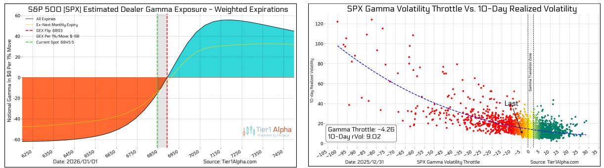 Tier1Alpha as of Friday morning saw gamma as “modestly short, implying the conditions for higher volatility are back in place.”