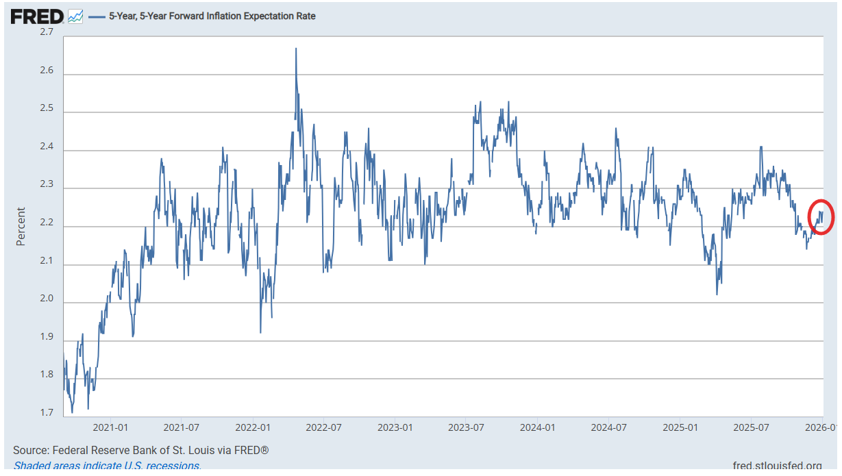 Long term inflation expectations as measured by the 5-yr, 5-yr forward rate (expected inflation starting in 5 yrs over the following 5 yrs) held just under 3-month highs hit last week at 2.22% but remains still just 8bps from the 2.14% Nov 20th which was the joint the least since April, and before that Mar ‘23, and remaining near the bottom of the range since 2022. They’re also a touch below their 20-yr average (2.25%).