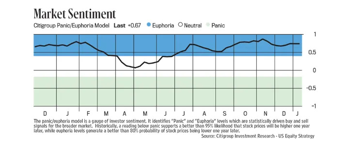 While the fine print says “[h]istorically...euphoria levels generate a better than 80% probability of stock prices being lower one year later,” it has seen a mixed track since the start of 2024: