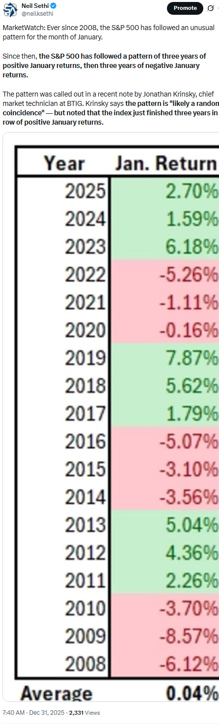 As noted last week as we embark on a new year, I’ll be reworking this section. If you want the summary as to “how we got here” in 2025 you can see the Dec 21st Week Ahead in this section.