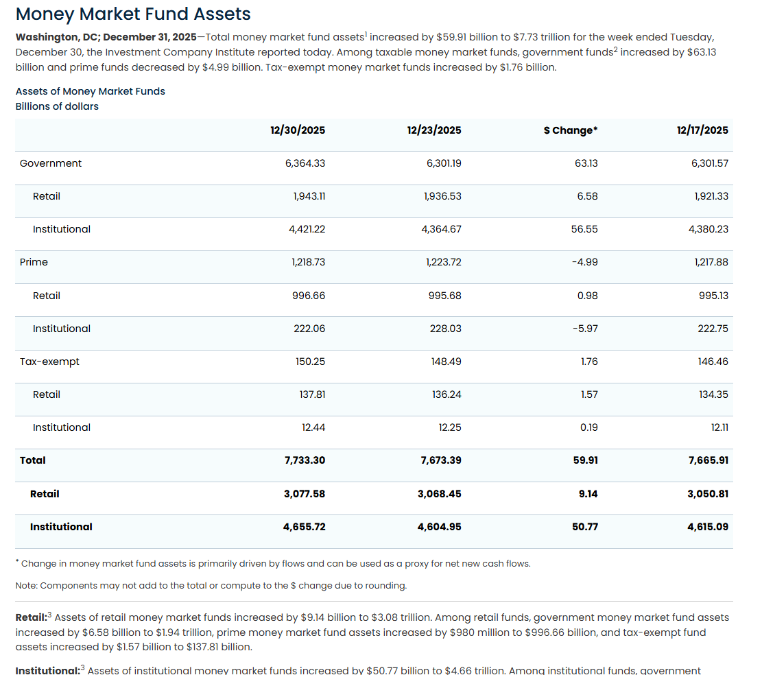 Total MMF assets ended 2025 at a record $7.73tn.