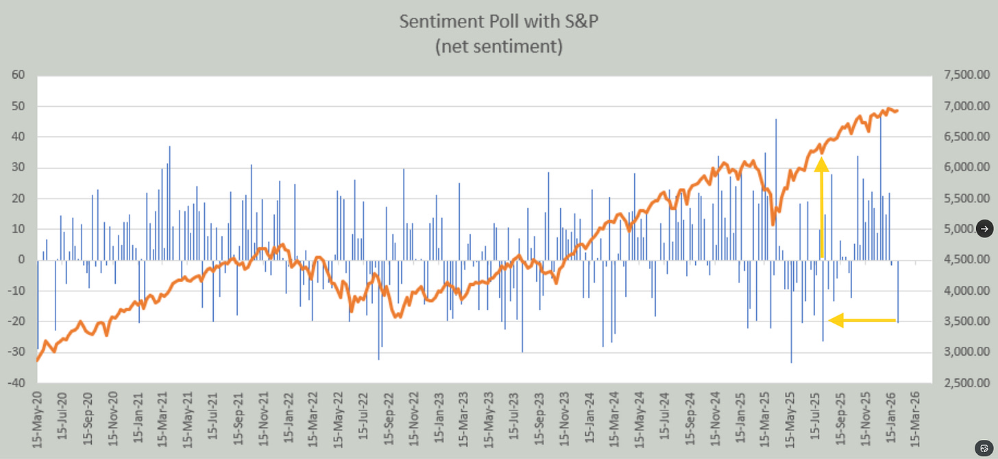 Sentiment (which I treat separately from positioning) is one of those things that is generally positive for equities when its above average but not extreme (“it takes bulls to have a bull market”, etc.), although it can stay at extreme levels for longer than people think, so really it’s most helpful when it’s at extreme lows (“washed out”).