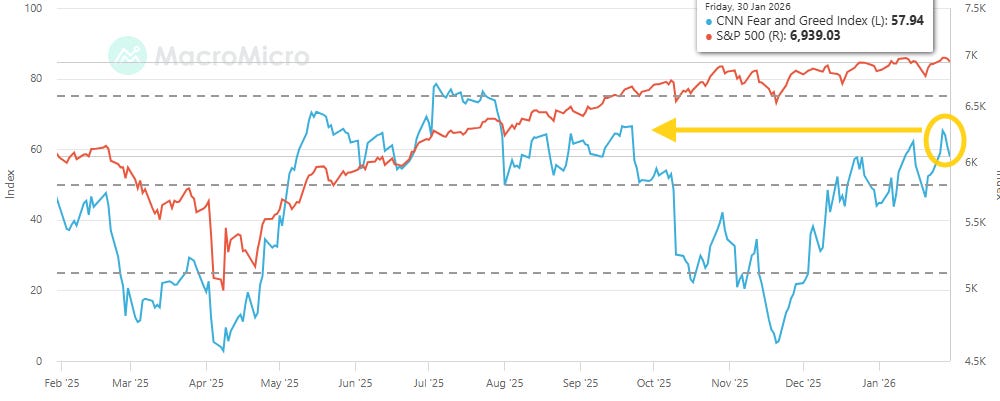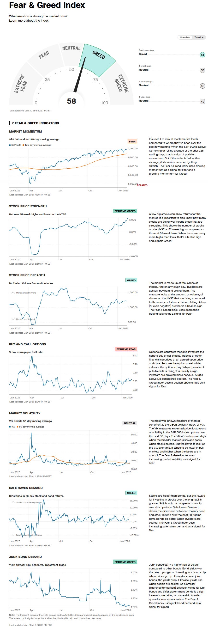 Extreme Greed = junk bond demand (vs investment grade); stock price strength (net new 52-week highs)