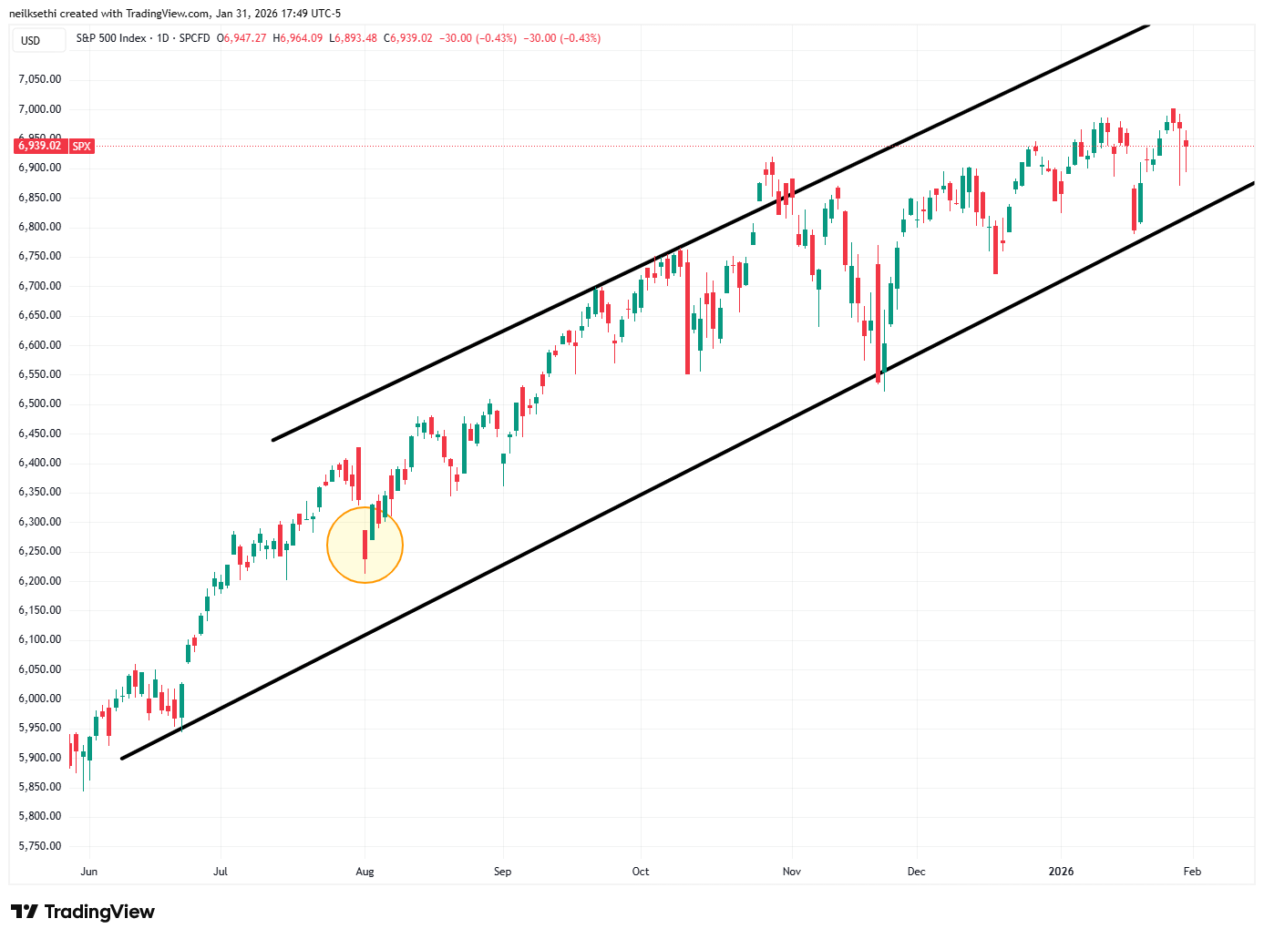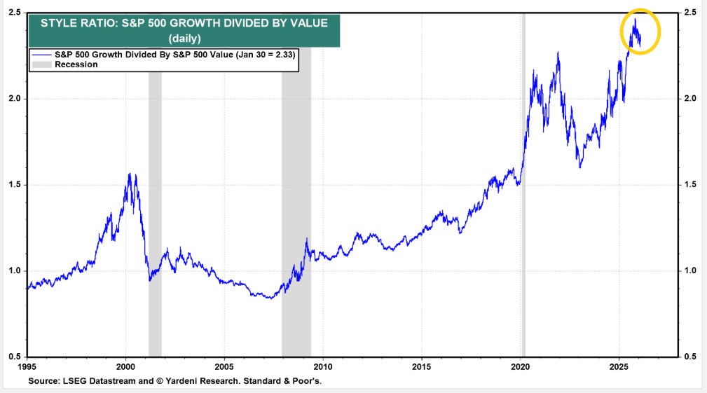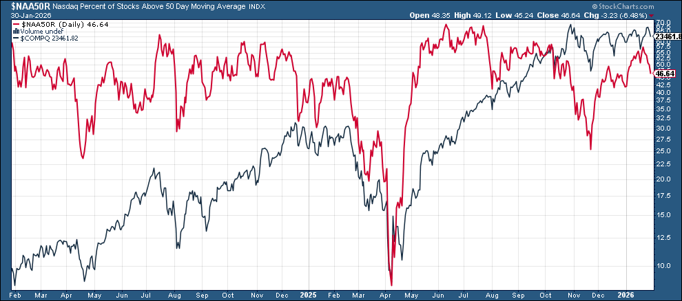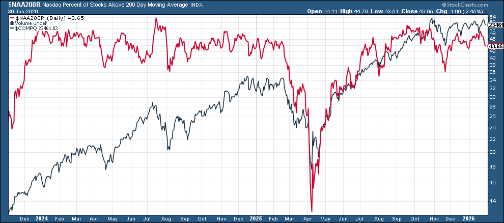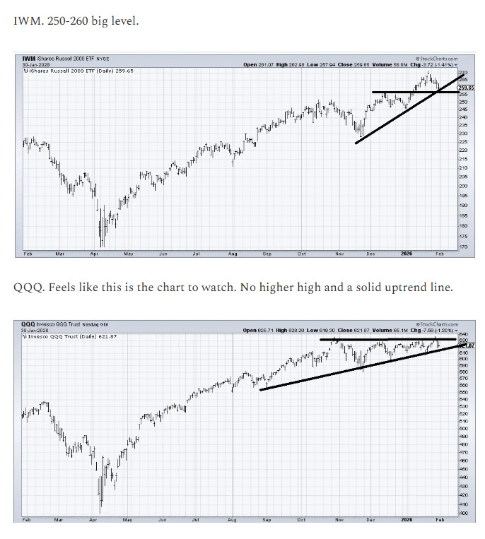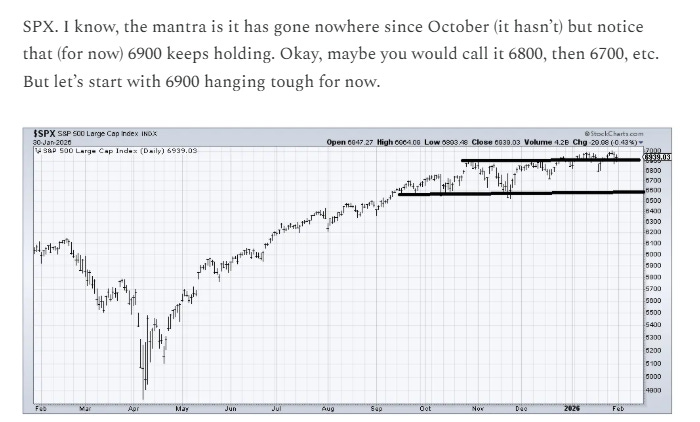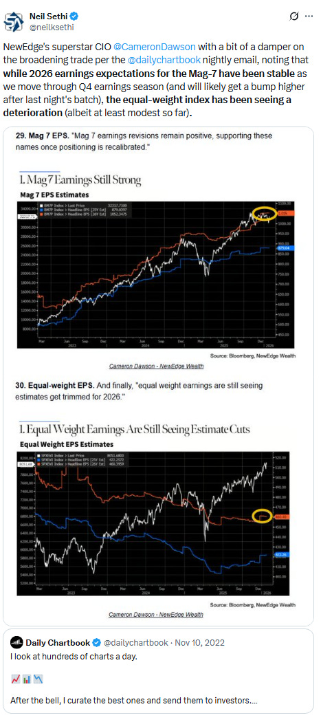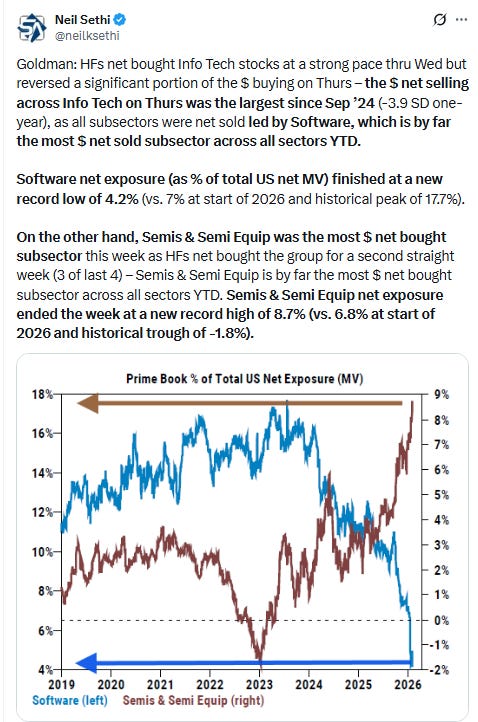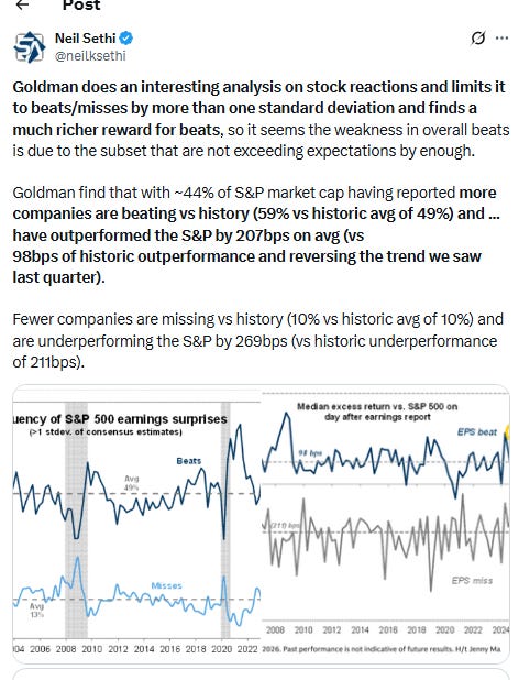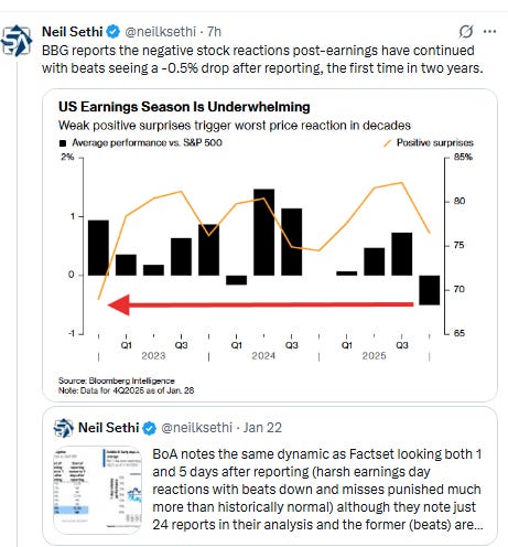 I really don’t have a lot to add to that. We got through the biggest week of earnings, which included four of the Mag-7, in mixed fashion, including a historic bifurcation between Meta (good) and Microsoft (bad). That seems to be reflected throughout the market with certain pockets white hot (memory chip makers for instance) while others are ice cold (such as software).