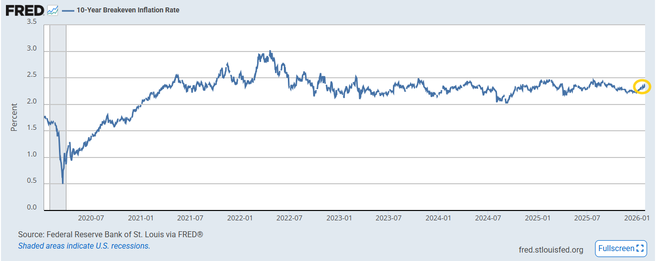 Interestingly though the 10-yr breakeven inflation rate moved to the highest since Sept at 2.36%, but remaining in its post-2022 range.