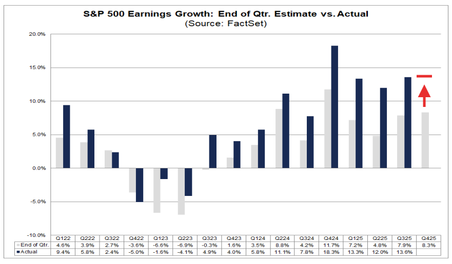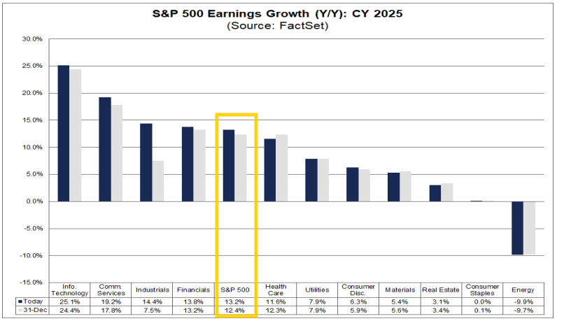 2025 earnings growth expectations as a result moved to +13.2% from +12.4%, the prior week (and where it started the year), and up from +10.6% Sept 30th.