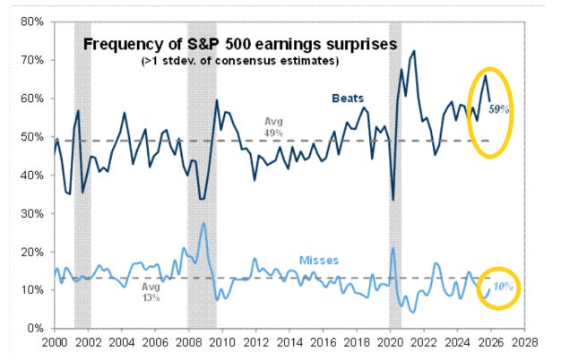 While Q3 earnings will continue to trickle in, they won’t move the needle, so if you want to reference the stats for Q3 you can find them at this posta from 11/23/25.