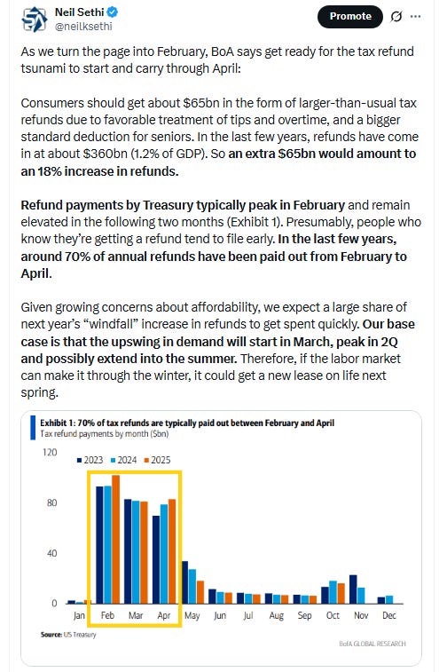 Excellent comprehensive analysis as always, Neil. The upcoming January jobs report will be particularly interesting given the QCEW revisions you highlighted - if we see anything close to the -700k revision Powell hinted at, it could certainly shift the narrative on Fed policy into Q2.