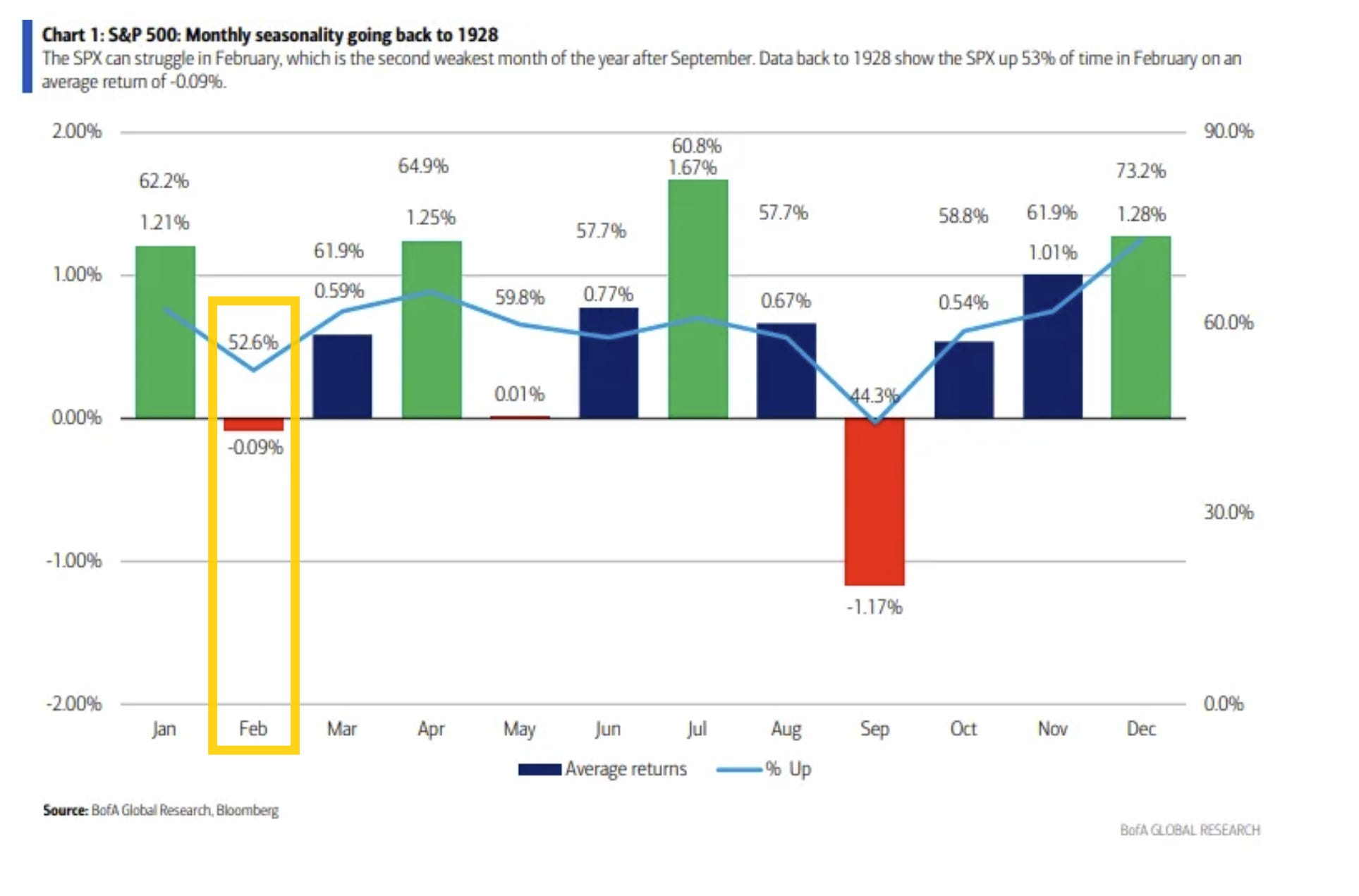 For the month as a whole though, since 1928 February is 2nd wors month with an avg return of -0.09%, up just 52.6% of the time.