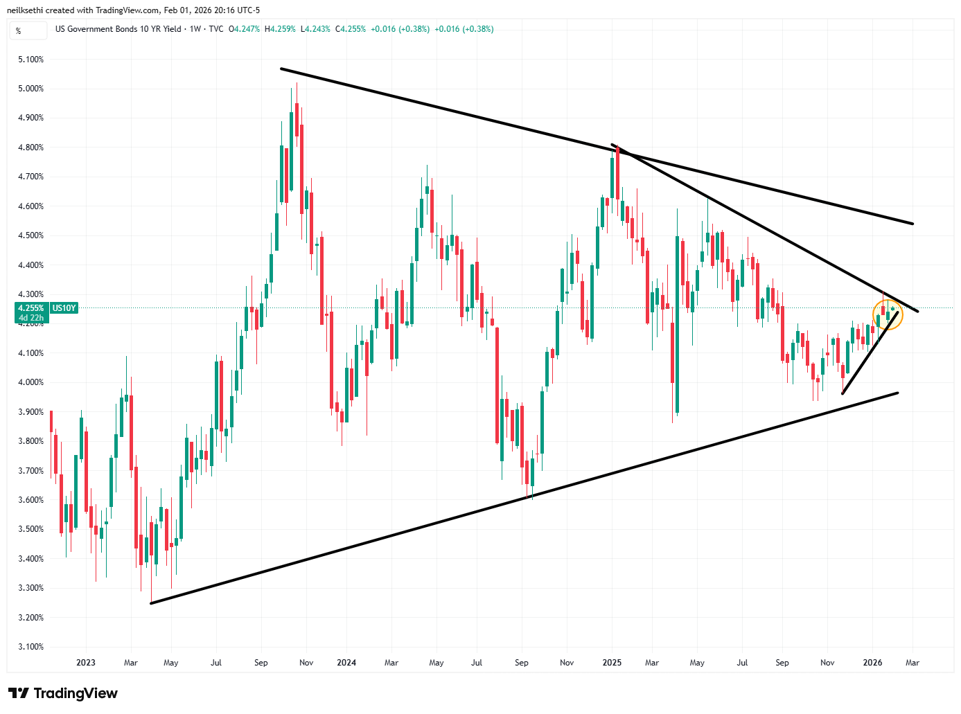 But between now and when Warsh is confirmed (which is highly likely once this roadblock with Tillis is cleared) unless Trump changes his mind, we’ll need to see either inflation or the labor market move significantly lower before we can expect any further rate cuts. For now, hikes are not even being considered. “They are nobody’s base case,” Powell said meaning even the most hawkish don’t expect rates to move higher over the next year at least.