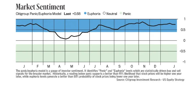 While the fine print says “[h]istorically...euphoria levels generate a better than 80% probability of stock prices being lower one year later,” it has seen a mixed track since the start of 2024: