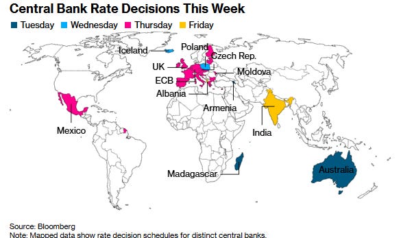 The Bank of England is likely to leave rates on hold at 3.75% on Thursday, as UK officials debate how much further to go in their cutting cycle. The rate-setters are weighing a faster-than-expected cooling in inflation against surveys pointing to stubbornly high wage growth and a strengthening economy. It will unveil new forecasts that are expected to show inflation falling close to the BOE’s 2% target over the spring, following measures in the Labour government’s recent budget to ease cost-of-living pressures. The same day, policymakers in Prague are likely to hold rates at 3.5% as they await evidence that inflationary pressures are easing.