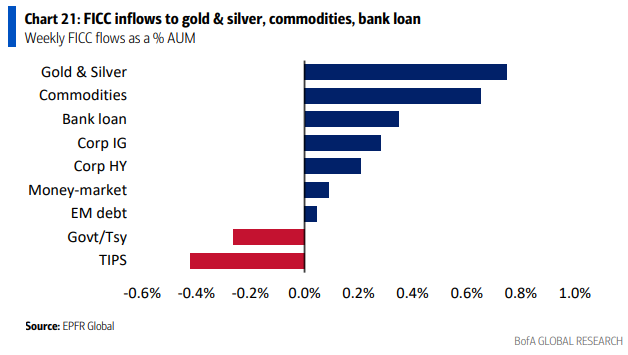 Hartnett notes the “old” BofA Bull & Bear indicator though fell for a second week to 6.4 from 7.0 the prior week and 7.5 the week before that (the highest since Feb’21, but still never hitting a sell signal (the old indicator didn’t hit a sell signal post-pandemic (why they changed it))).