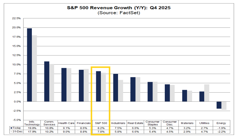 The 8.2% in expected earnings growth continues to be largely driven by Tech which is expected to see a huge +29.8% y/y increase (+3.6% w/w).