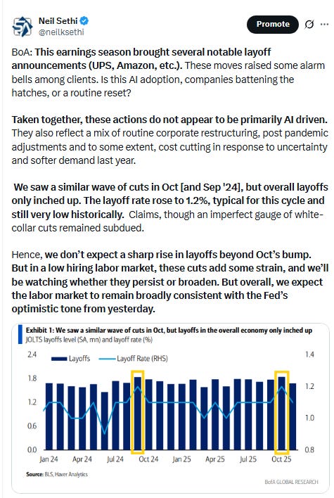 Your point about the economy showing signs of reacceleration is well-taken, especially with the Atlanta Fed tracker over 4% for Q4. The disconnect between that strength and the continued labor market softening will be crucial to watch. The combination of strong GDP trackers alongside elevated jobless claims creates an interesting dynamic for rate expectations.
