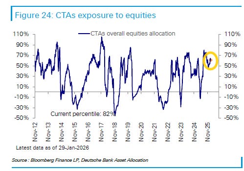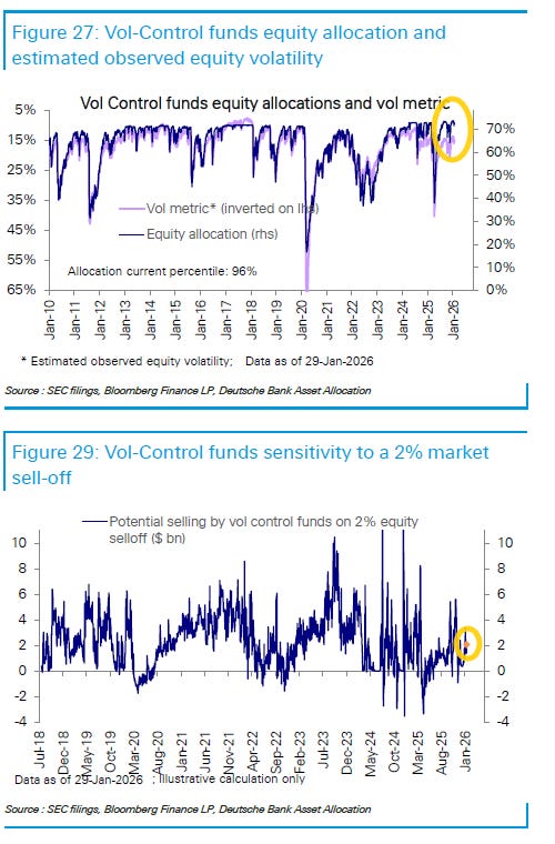 DB sees vol control funds “slightly below their historical maximum allocation (96th percentile)”, and their sensitivity to market selloffs “relatively low.”