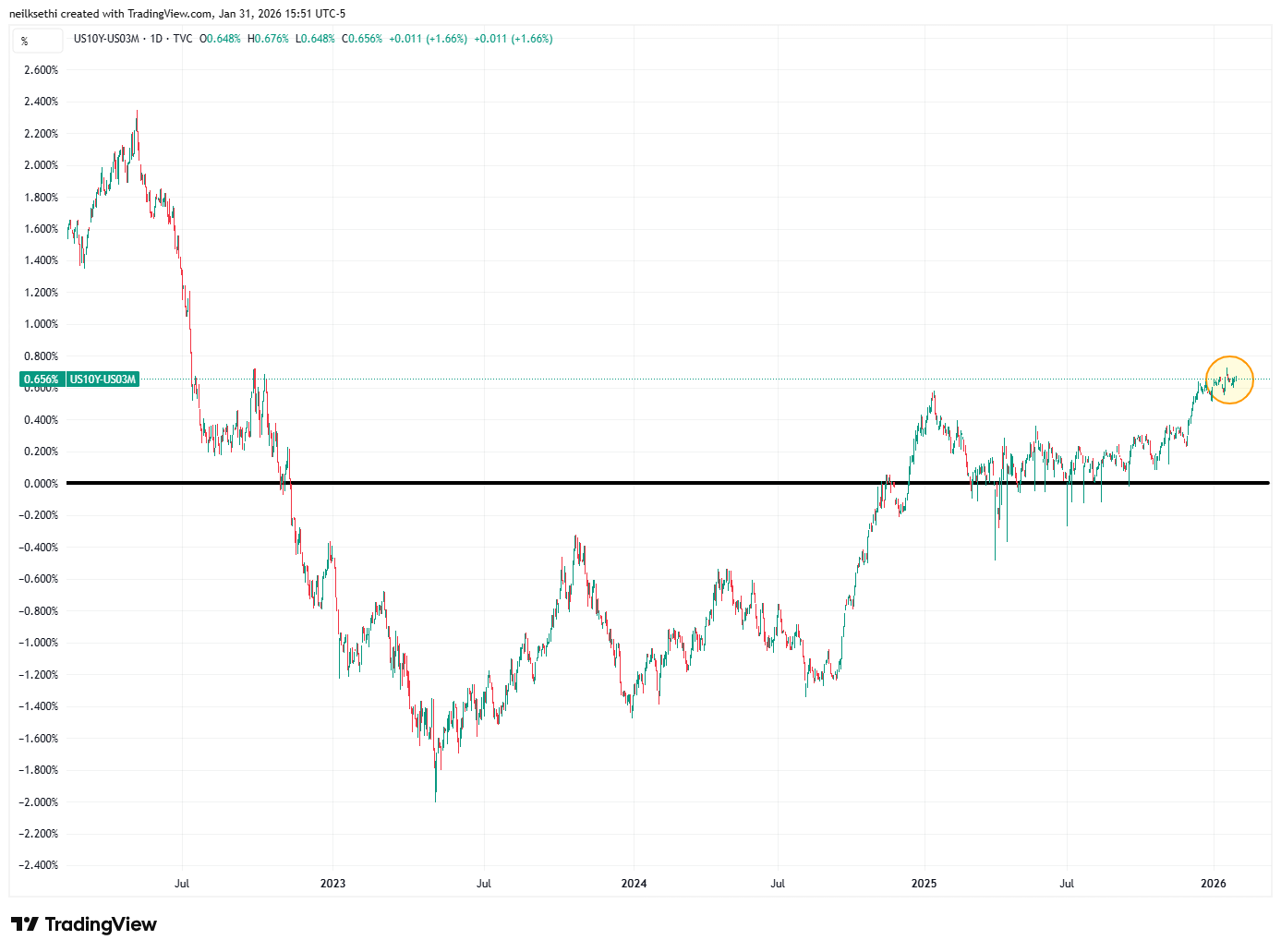 The 3mos/10yr yield moved to +0.66%, not far from the +0.72% Jan 20th which was the highest since Oct ‘22 still though calling for more rate cuts or a move higher in 10yr yields (this is historically around +1.25%).