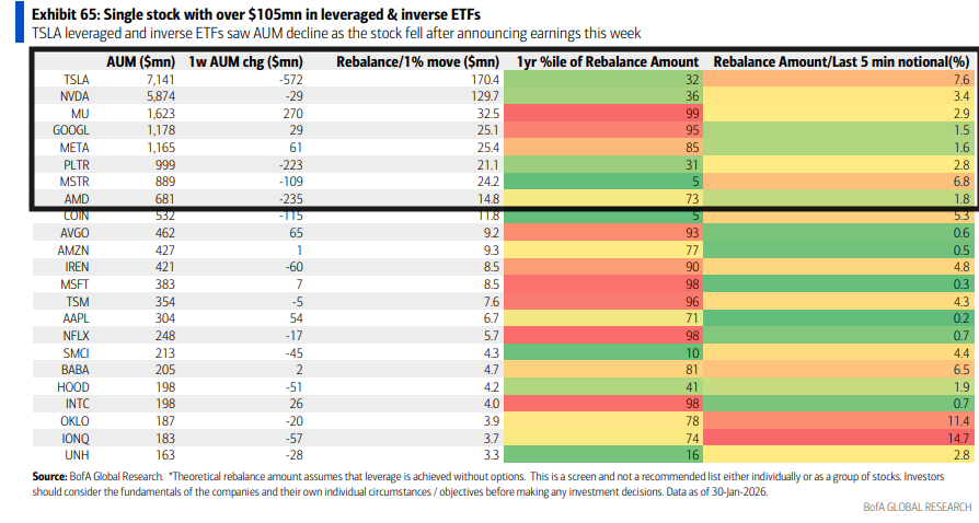 META improved to 5th adding $61mn to $1.2bn (85th %ile) and MSTR (-$109mn) remained in 7th at $0.9bn (but just the 5th 1yr %ile). I noted last week you can now add AMD to the mix but that fell back dropping -$235mn to $681mn in AUM.