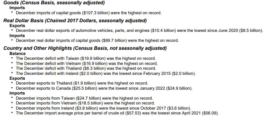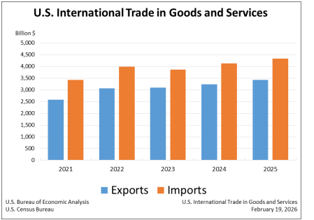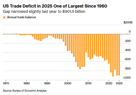 “With December’s trade report in hand, we can estimate that net exports contributed little to real fourth-quarter GDP growth. In line with other recent data, imports of capital goods — led by AI related products — continued to signal strong domestic investment to end the year.” — Troy Durie, BBG.
